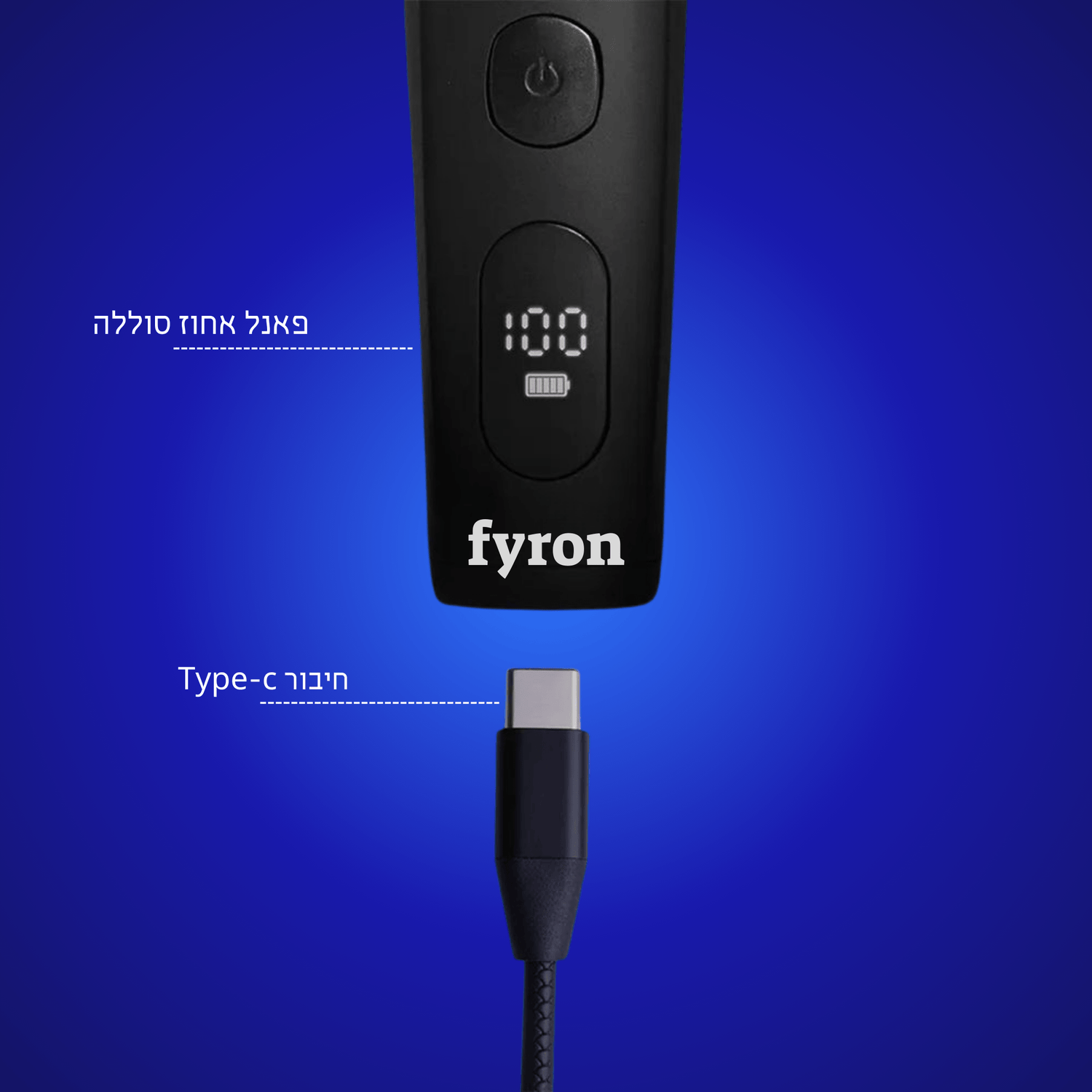 הסוללה של FYRON מעניקה עד 90 דקות של כוח מלא, עם טעינה חכמה ששומרת על עוצמה קבועה לאורך כל השימוש, כדי שתוכל לסדר, לדייק ולשפץ מתי שנוח לך, בלי לרדוף אחרי שקע ובלי לחשוב על טעינה.