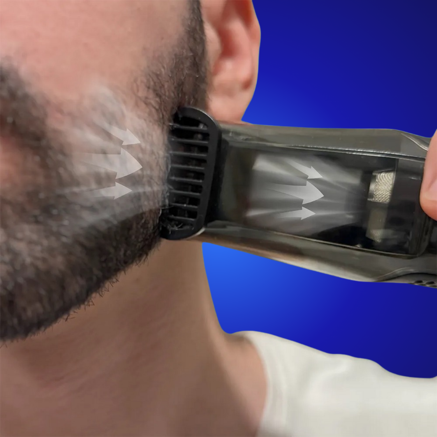 מעצב זקן עוצמתי עם מערכת שאיבה חכמה לשאיבת השערות בזמן העבודה.
