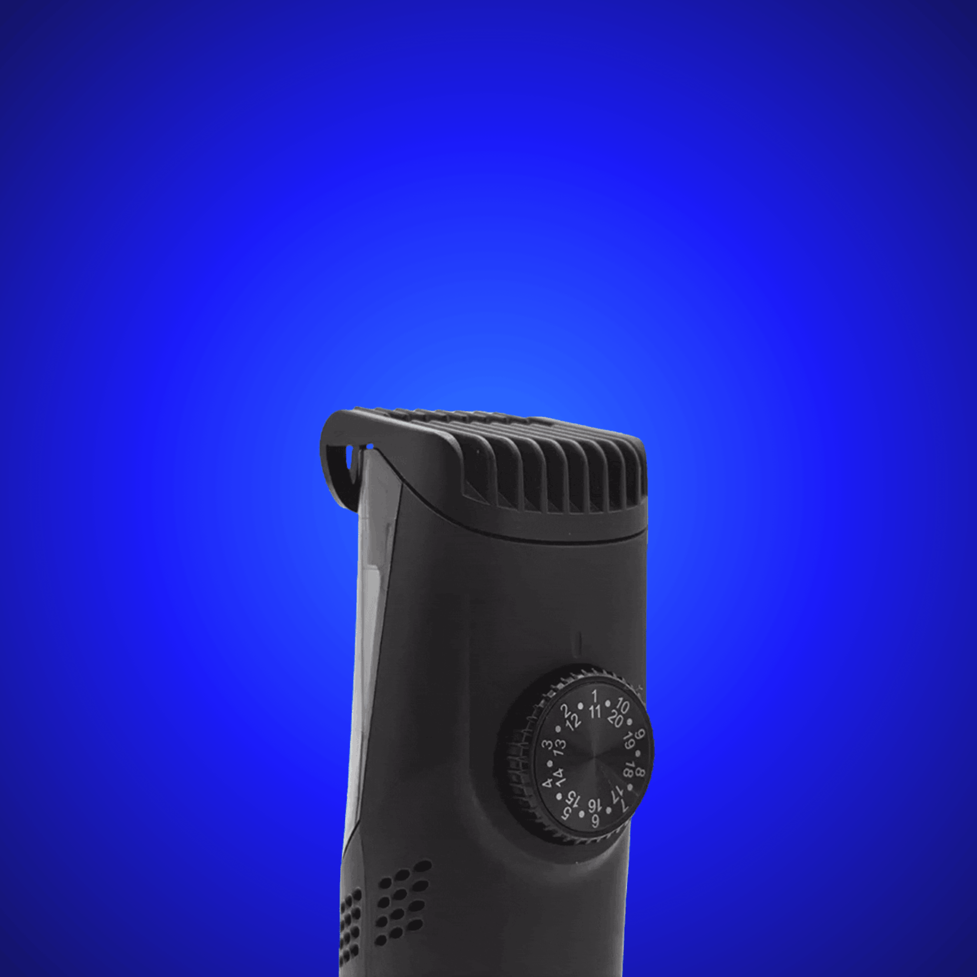 מעצב הזקן מופעל בלחיצה פשוטה, עם שתי רמות שאיבה לבחירה. התאימו את דרגת הקיצוץ במדויק בעזרת שני הראשים הכלולים וגלגל הדרגות המובנה.