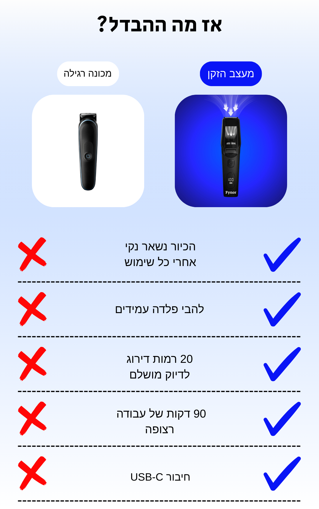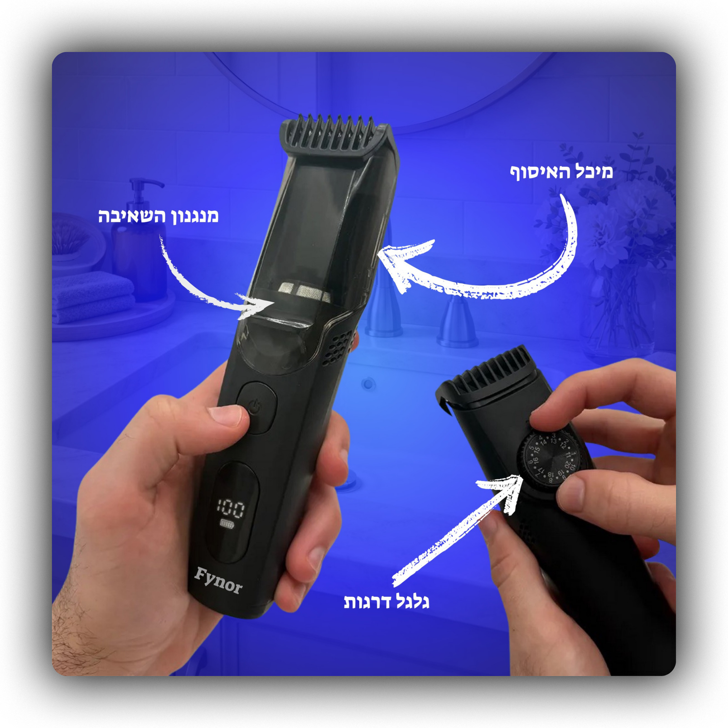 עם FYNOR אתם מעצבים את הזקן ובאותו הזמן שואבים את השערות למיכל, חוסכים זמן, מאמץ ונפרדים מהאמבטיה המלוכלכת