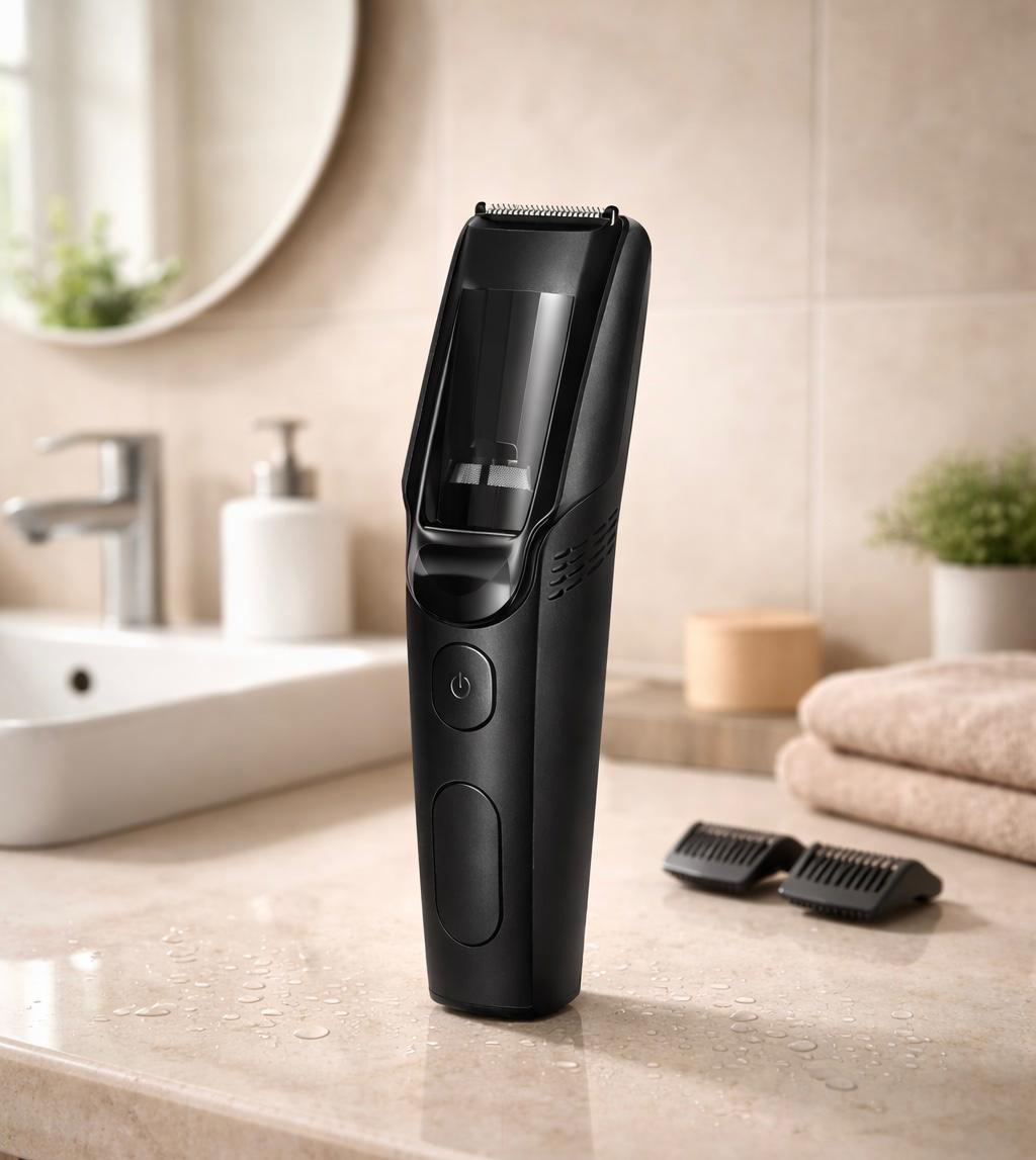 הלהבים החדים מבטיחים קיצוץ אחיד ומדויק, בעוד שטכנולוגיית השאיבה החכמה לוכדת את השערות ישירות לתוך מיכל האיסוף, כך שהכיור וסביבת הטיפוח נשארים נקיים.